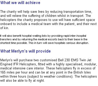The aircrew provided by Merlyn's will consist of a chief pilot, a co-