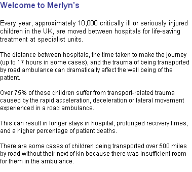 That's why Merlyn Lewis – a paramedic with over 40 years experience – set up Merlyn's. The charity will raise money to purchase and operate two dedicated, intensive care helicopters specifically designed to help save the lives of these children.